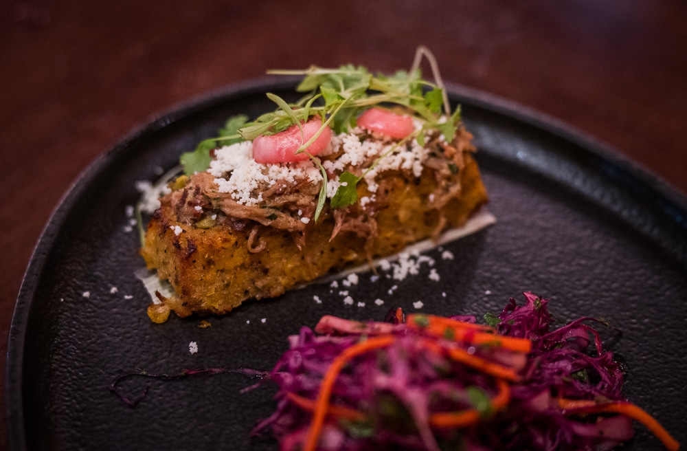 One fan-favorite dish that hasn’t gone away or changed is the Oaxacan Pork Duo: Grilled Pork Chop, Peanut Salsa Macha, Sweet Plantain-Chipotle Sauce, Corn Tamal, Smoked Pork Shoulder, Salsa Verde, Cabbage Slaw.