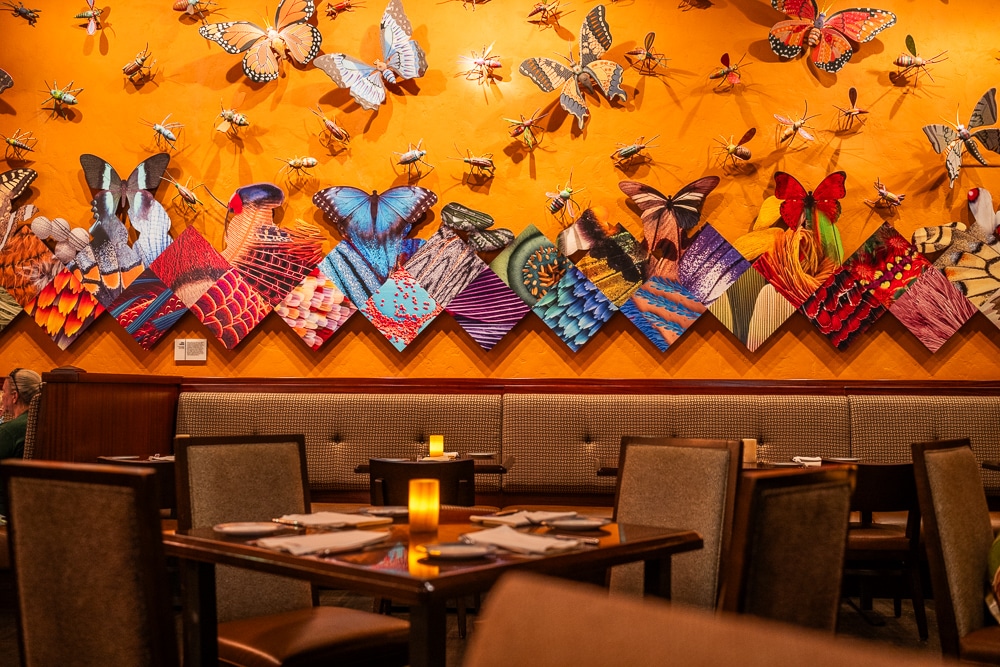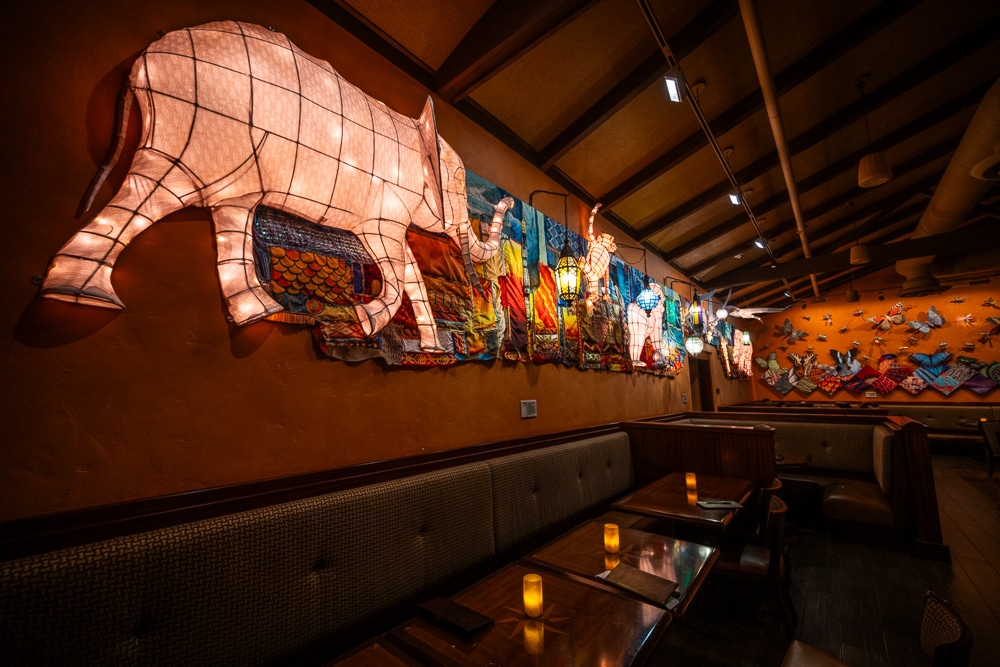 The design and decor of Tiffins are nevertheless an enjoyable part of the experience, as the interior celebrates the spirit of global discovery, and the Imagineers and animal experts who built Animal Kingdom. It’s basically a love letter to the park, carried out via equal parts nods to inspiration and homage.
