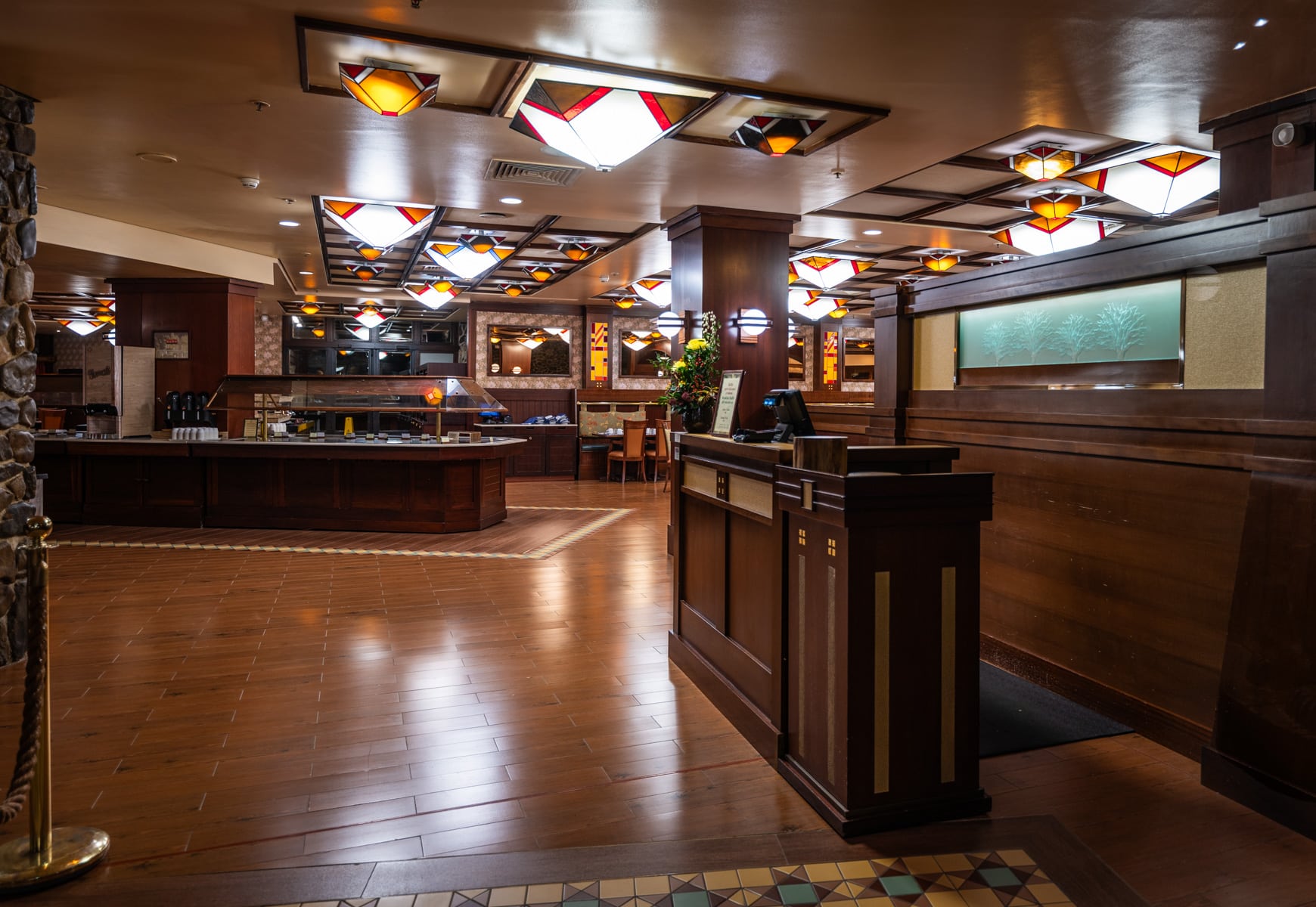 On the other hand, stripping away the thematic elements and repainting large expanses of the interior white would not. That’s my fear. That the “touch of modernity” here won’t be letting the original architecture and design shine through, or enhancing that. But rather, that it’ll be generifying the inside, chasing current trends, and trying to transform Sequoia Lodge into something it isn’t.