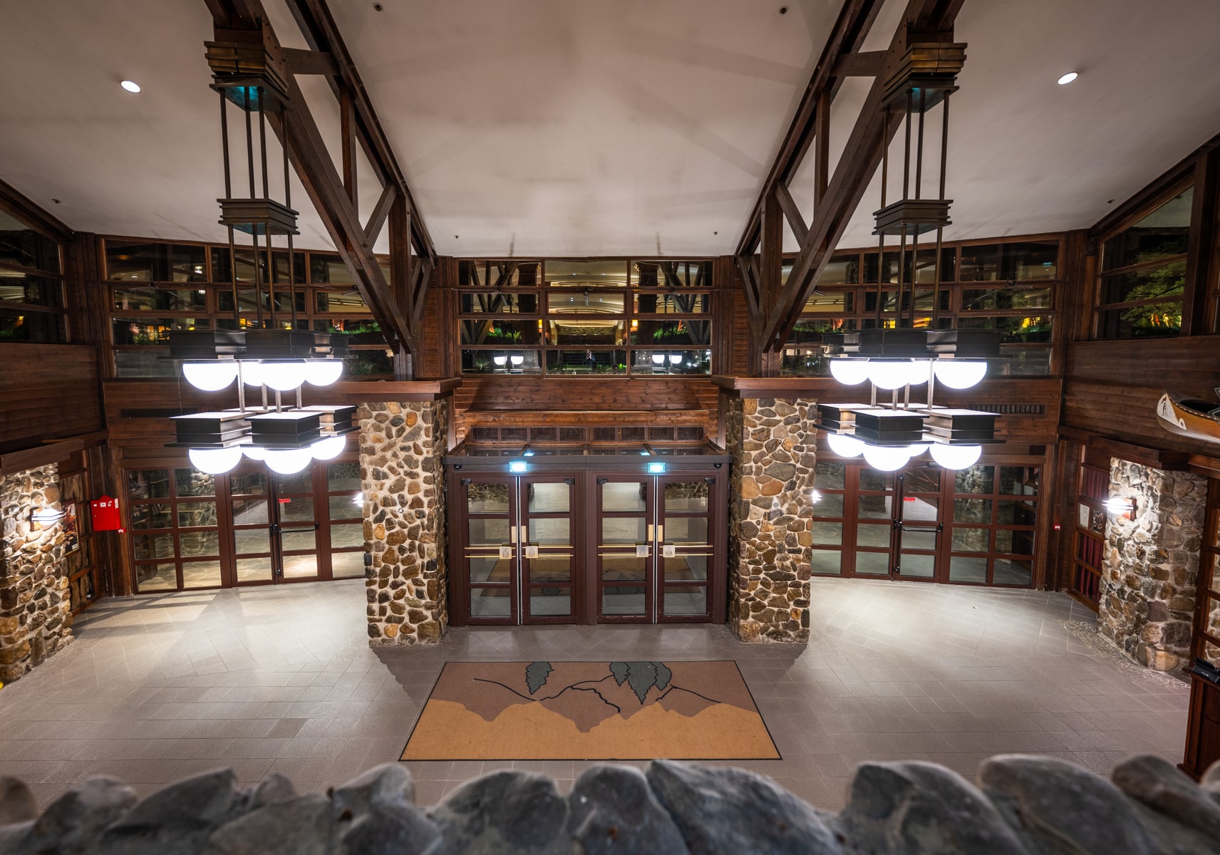 What Disney neglects to mention is that its original designer, French architect Antoine Grumbach, also drew from Frank Lloyd Wright’s Prairie Style for a more modern style than Disney’s other lodges around the world. Meaning that more modernity should work here; Sequoia Lodge was always intended to be more modern than Wilderness Lodge or the Grand Californian.